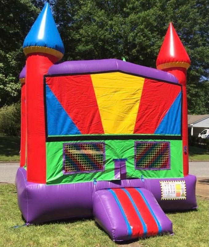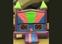 Great fun for the little royals in this 14' x 14' bounce house! Bright pink, purple, and blue make this a little girl's dream bouncy! (DRY ONLY)14' wide x 14' long x 16' tall