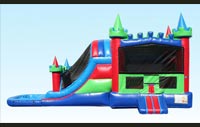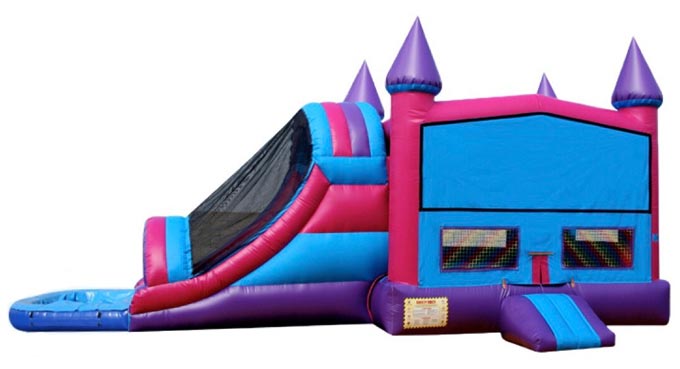 This is a combo unit bounce house with slide perfect for your little princess! (WET ONLY + deep pool attachment must be filled with water prior to hooking the water up to the top of the slides)13' wide x 30' long x 16' tall