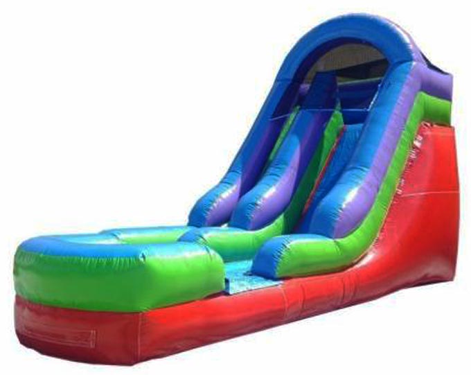 This is a 15' single lane slide that is geared more towards the younger kids. If you need a slide for children ages 5 and under then this is a good option for you! (DRY OR WET)9’ wide x 27’ long x 15’ tall