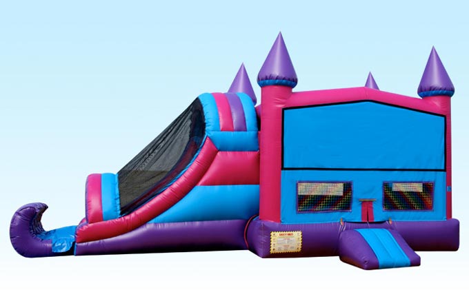 This is a combo unit bounce house with slide perfect for your little princess! (DRY OR WET)13' wide x 26' long x 16' tall