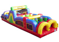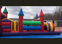 Increase the adventure at your child's birthday party! Kids of all ages and their parents, too, will love this Obstacle Course and will definitely not want to leave it! It boasts dual lanes and participants can run, climb, jump, crawl, and slide to reach the finish line. (DRY ONLY)11' wide x 40' long x 11' tall