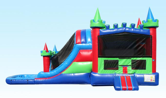 This is a combo unit bounce house with slide perfect for your little princess! (WET ONLY + deep pool attachment must be filled with water prior to hooking the water up to the top of the slides)13' wide x 30' long x 16' tall